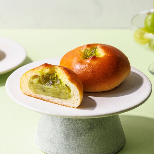 華やかな香りと味わいを楽しめる、しっとりとしたゼリー入りシャインマスカットあんを酒種生地で包みました。(長野県産シャインマスカット使用)