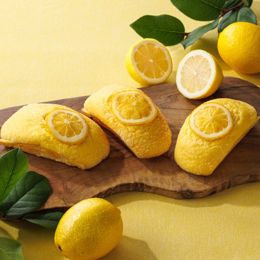 レモン風味のクッキー生地を重ねた、爽やかな香りと味わいのれもんパンです。スライスレモンのほのかな苦みと酸味がアクセント。販売期間:7月1日(月) ~8月31日(土)