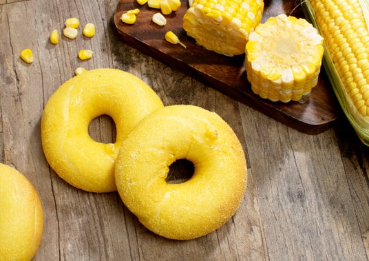とうもろこし 247 円(税込)スイートコーンを混ぜ込んだバターが香るコーンブレッド風ベーグルです。香ばしいプチプチとした食感も楽しめるコーングリッツをトッピングしました。