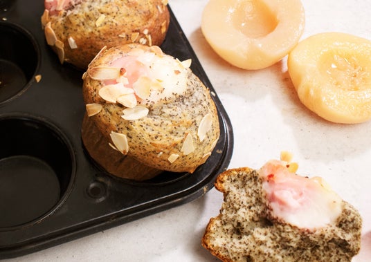 アールグレイ香る白桃マスカルポーネ 345 円(税込)北海道産マスカルポーネを使用したチーズクリームと白桃のごろっとした果肉が味わえフルーティーなピーチクリームを包み込みました。アールグレイが香る芳醇な味わいのマフィンです。