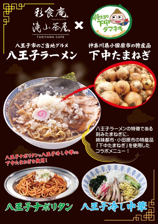 「下中たまねぎ」を通じた交流型農業に取り組む「JAかながわ西湘小田原オーナー園部会」では、これまで八王子市との「下中たまねぎ」を通じた姉妹都市間交流を行っています。この度、都内唯一の道の駅「道の駅八王子滝山」で、刻みたまねぎが特徴である八王子市のご当地グルメ「八王子ラーメン」や「八王子ナポリタン」などに「下中たまねぎ」を使用したコラボメニューを期間限定で提供する他、「下中たまねぎ」をはじめとする小田原市の特産品を通じた交流イベントを開催します。