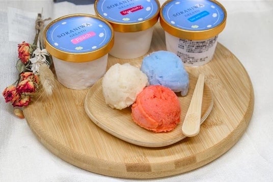 京都の中心部の四条河原町に、鴨川や東山を天空から望むルーフトップ・ラウンジ「空庭テラス」と、最上階の天然自家源泉「天空露天風呂」をしつらえ、新しい日本の温泉宿として誕生したホテルです。全室露天風呂付きの「四条河原町温泉 空庭テラス京都 別邸」とコンパクトな客室タイプの「四条河原町温泉 空庭テラス京都」の2つのホテルが同じ建物内にあります。今回、夏の期間限定で新鮮で美味しいけれど規格外のサイズのため出荷されなかった果物使ったオリジナルジェラードをご用意しました。ソルト&ライチ、ストロベリー、ピーチの3種類から、1泊につきおひとり様1個進呈します。ループトップラウンジ、またはお部屋で涼みながらお愉しみいただけます。