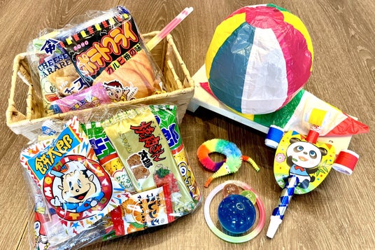 小さなお子様や大人もお愉しみいただける、駄菓子詰め合わせセットと懐かしのおもちゃが選べる楽しいプランです。