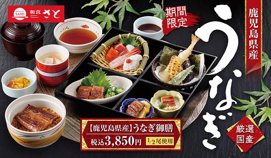国内197店舗を展開する「和食さと」では、鹿児島県産の【鰻(うなぎ)】を使用したメニューを6月27日(木)より期間限定・数量限定で販売します。