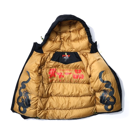 今回のコラボレーションダウンは、ナンガのフラッグシップモデルである“オーロラテックスダウンジャケット”をベースに、天下一品の代名詞“こってりスープ”をデザインに落とし込んだエクスクルーシブな1着となっている。