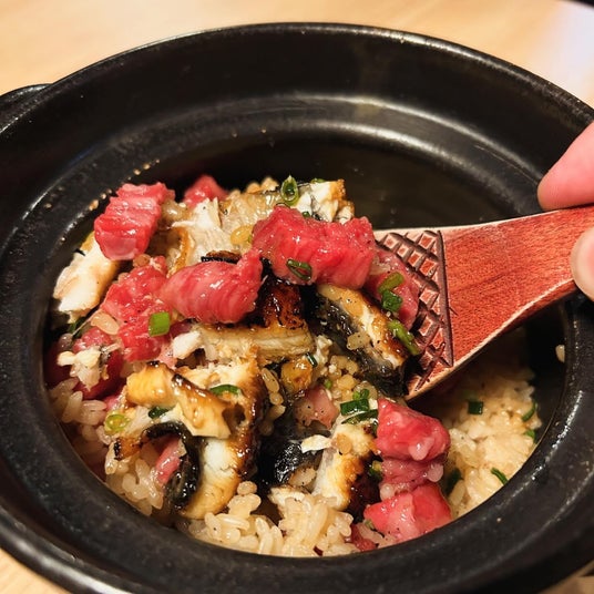 ・厳選黒毛和牛と蒲焼き鰻、山椒風味の土鍋ご飯