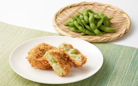 夏には「枝豆」や「コーン」、秋には「博多明太子」「里いも」など、その時期にぴったりの味を期間限定商品として展開し、根強いファンも多いコロッケシリーズです。定番の「ポテトコロッケ」「エビクリームコロッケ」もとんかつと合わせて購入されるお客様が多く、ロングセラーとなっています。