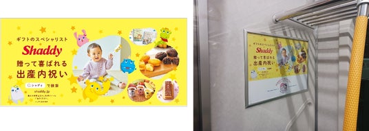 シャディは、ギフト販売の専門店として、お子様の誕生を祝う出産祝いや内祝いに始まり、お子様の成長と共にある様々なギフト機会をサポートし、多くの子育て世帯を応援しています。今回、思いやりの証である「マタニティマーク」の普及活動に賛同し、妊産婦に優しい環境づくりの推進を願って、広告の掲載に至りました。タイアップ広告では、出産準備、産後の悩みとしてお声の多い『出産内祝い』を採用。シャディでは出産内祝いとして、手軽に贈りやすいスイーツ・グルメをはじめ、日用品やカタログギフトなど贈って喜ばれる商品を多数ラインナップしており、電車に乗ったママの内祝い選びの手助けになればという想いを込めています。