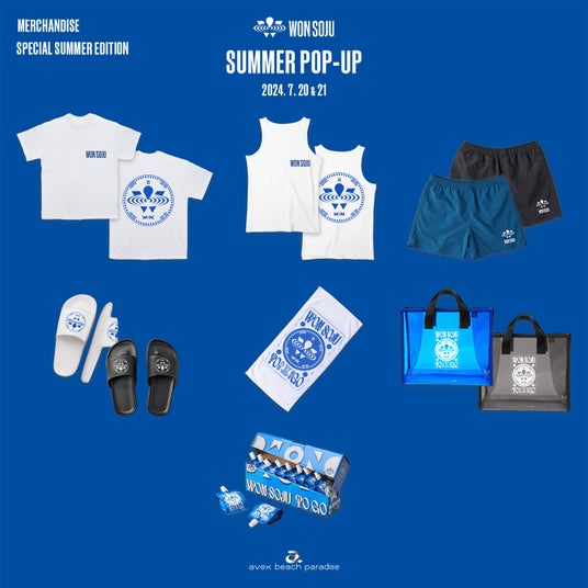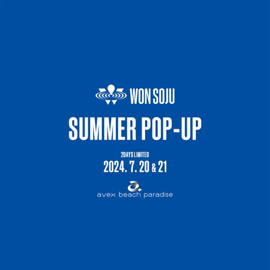 海の家avex beach paradiseにて7月20日(土)~21日(日)の2日間、WON SOJU POP UPイベントが開催される。この日にはWON SOJU専用ブースが設置され、限定グッズの販売も行われる。夏仕様のアイテムが多数ラインナップされている。店内のモニターやBGMもこの日はWON SOJUの生みの親である韓国アーティストJAY PARK色に染められるとのことだ。