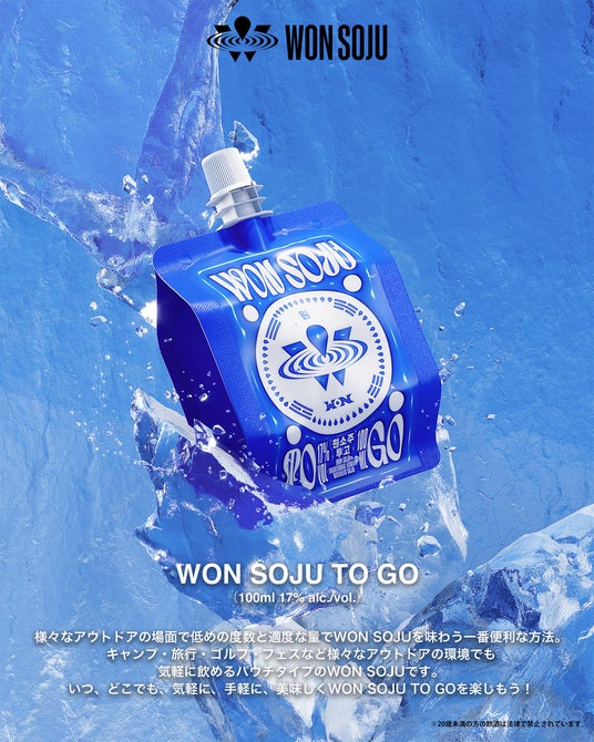 2022年に韓国で発売開始され、大ヒットとなった新しい韓国米焼酎WON SOJU(ウォンソジュ)。そして今年4月についに日本に本格上陸したWON SOJUが、夏のアウトドアシーズンに向け新商品を発売する。日本では見かけないパウチタイプのパッケージのお酒で、新たなトレンドになりそうだ。