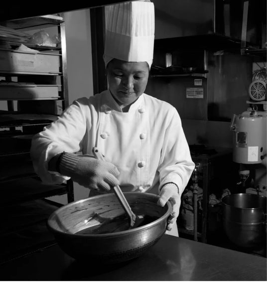 日本にないバタークリームを開発者のバクサシェフはドイツで10年の修行を積み、製菓マイスターの資格を取得。ミシュラン1つ星レストランのパティシエ経験を持ちます。「日本のバタークリームは重い。日本の素材で、もっと軽くて飽きのこないクリームができないか」とバクサシェフは考えました。北海道のクリームチーズをはじめとした素材と出会うことで、それが実現したのです。