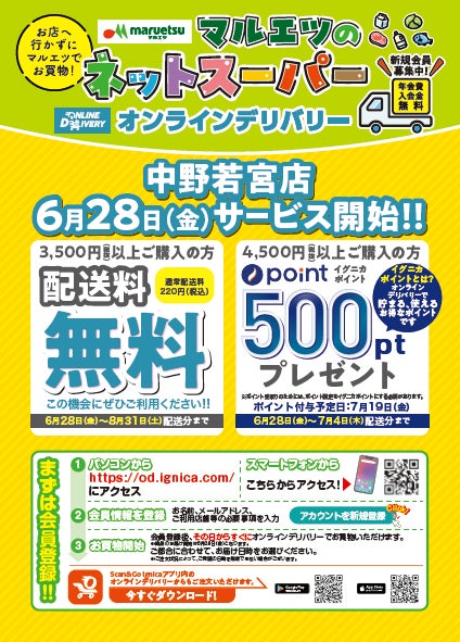 「オンラインデリバリー」は、ショッピングアプリ「Scan&Go Ignica」および、マルエツのホームページからご利用いただけるサービスです。