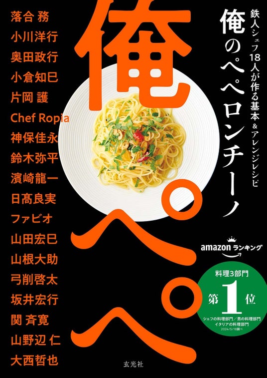 株式会社玄光社(本社:東京都千代田区)は、書籍『俺のペペロンチーノ 鉄人シェフ18人が作る基本&アレンジレシピ』を2024年6月29日に発売しました。5月17日に予約販売を開始し、翌18日にはAmazon売れ筋ランキングで料理本関連の3部門「シェフのレシピ」「男の料理」「イタリアの料理」で1位となり話題となっています。