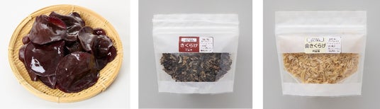左から「生黒きくらげ」「乾燥黒きくらげ」「乾燥白きくらげ」