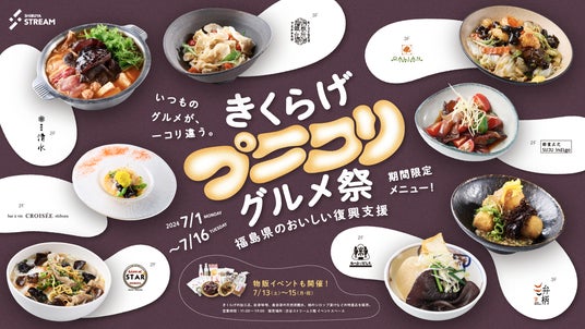 「ふくしま、シン発見!!(本社:福島県郡山市、代表:フーズネット福島)」は渋谷ストリームにて、2024年7月1日(月)から7月16日(火)の期間限定で、福島県郡山市で育った国産きくらげが主役のグルメイベント「きくらげプニコリグルメ祭(以下『本イベント』)」を開催します。