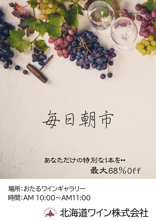 7月1日より毎日AM10:00~AM11:00の時間に、「おたるワインギャラリー」では、朝市を開催します。