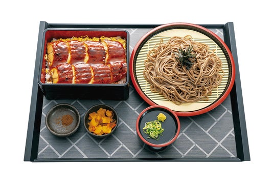 宮本むなし「うなぎフェア」では、大振り肉厚で香ばしく焼き上げふっくらと仕上げたうなぎをお召し上がりいただけます。今年は新作として、うなぎご飯とざるそばをセットにし、刻み海苔・わさび・山椒などの薬味と一緒にひつまぶし風にお楽しみいただける「うなぎご飯とざるそばセット」が登場します。