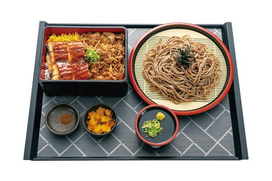 鰻と牛焼肉重とざるそばセット 1,690円(税込み)