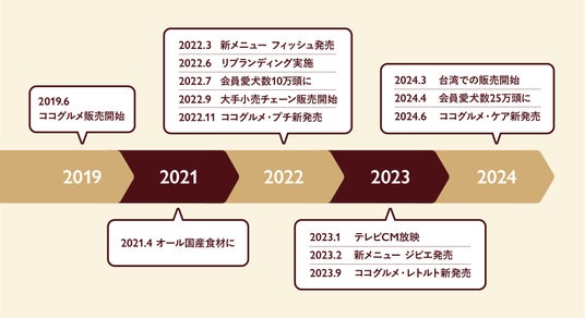 新型コロナウィルス感染拡大による自粛生活で新たにワンちゃんを迎える家庭は増加し、更に近年の健康志向やワンちゃん平均寿命の伸びにより愛犬の食や健康への関心が高まるなど動物を取り巻く環境は日々変化しています。人々の生活、意識の変化に伴い、ココグルメは多くの方とワンちゃんに支持されるブランドに成長してまいりました。