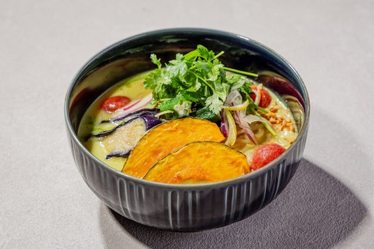 グリーンカレー冷麺 1,100円(税込1,210円)パクチーの風味が爽やかなグリーンカレースープの味を引き立て、夏野菜とあとからくる辛みで箸が止まらない美味しさ!