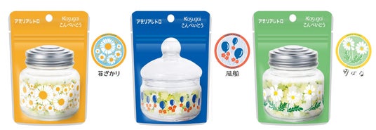 昭和のレトロかわいさが人気の「アデリアレトロのボンボン入れ360」「アデリアレトロのボンボン入れ(ミニ)」と、昔から愛され続けている小さくて愛らしい見た目の「こんぺいとう」の世界観がマッチするのでは、という発想から今回のコラボが実現しました。第2弾は夏らしい明るくパワフルなイメージから、黄色、白色、黄緑色の3色のこんぺいとうを選定しました。