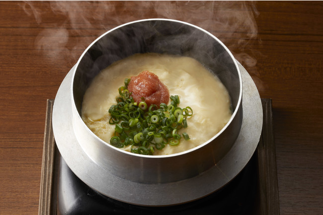 『ふわふわ釜たまご』は、卵の白身と濃厚な黄身のハーモニーを感じる抜群の一品。この「やわらかさ」を一度体験してしまうと、もう忘れることはできません。この度「プレーン」と「明太子」の2種類をご用意しました。「プレーン」は卵の上にネギのみ、「明太子」は卵の上に明太子とネギを後乗せします。明太子やネギをふんわり食感の卵と混ぜ合わせれば、今までにない味わいと風味を満喫できます。