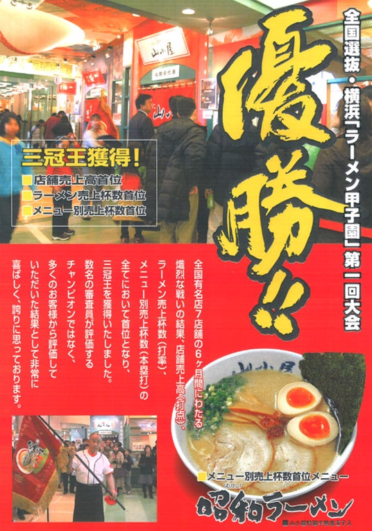 2004年「第1回 横浜ラーメン甲子園」にて優勝し、関東圏の皆様にも愛される味と評価いただきました!