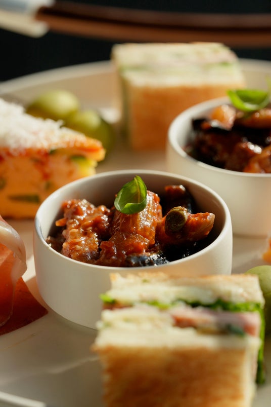 - セイボリー(カポナータ、フリッタータ、マンゴーと生ハム、サンドイッチ、オリーブ)