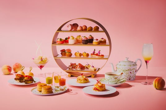 セイボリー「アボカドと蟹のタルタル 桃と柑橘の香り」や「『大阪 岩おこし』と『フランス ボルディエバター』桃のコンフィチュールを添えて」など、料理に取り入れた桃の新たな魅力を発見していただけます。オールデイダイニングのシグネチャー「THE MOMENT BURGER」はミニサイズながら神戸牛のリッチな味わい。夜の部ではお酒が進むアペタイザーが充実し、イブニングハイティーとしてお楽しみいただけます。