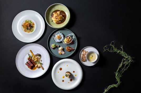 ゆっくりと流れる時間に身をゆだね、薪火を主役にした地産地消のイタリアンが人々の身も心も優しく解き放ちます。料理の主役は、館内からガラス越しに望むハース(Hearth/炉)で生まれる薪火料理。薪火ならではの多彩な加熱方法を駆使し、シェフの下枝が選定した地元産の食材を中心に華やかなイタリアンに仕立てます。ゆらめく炎や香りが生み出すライブ感とともに楽しんでいただけます。