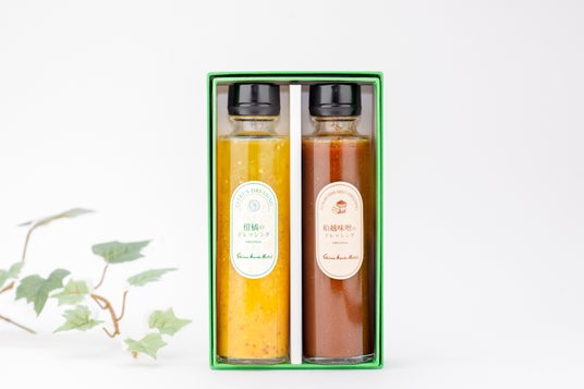 「柑橘のドレッシング」「船越味噌のドレッシング」各1本を詰め合わせたギフトセット。