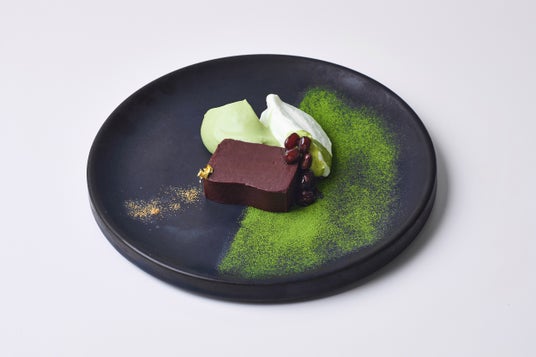 ダンデライオン・チョコレートとのコラボレーションによる濃厚なガトーショコラを、宇治抹茶蜜を使用したクリームと、マスカルポーネのクリームの2種類のクリームでお楽しみいただけます。