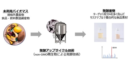 独自の発酵技術で未利用資源を再生・循環させる社会の構築を目指すバイオものづくりスタートアップの株式会社ファーメンステーション(本社:東京都、代表取締役:酒井 里奈、以下ファーメンステーション)は、未利用バイオマスを由来とした発酵アップサイクル素材で食品・飲料市場に本格参入いたします。これまで、独自の発酵アップサイクル技術プラットフォームをベースに、様々な素材を独自開発・共同開発し、主に化粧品市場向けに素材の展開を行ってまいりましたが、昨今の食品・飲料市場における脱炭素・脱石油ニーズ、クリーンラベルニーズ、プラントベースドフード等の新領域での技術課題解決ニーズ等に対応する独自のソリューションを提供することで、未利用バイオマスを由来としたバイオものづくりの領域を拡張します。