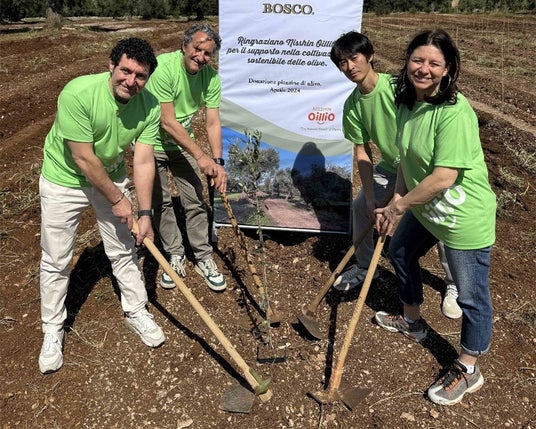 日清オイリオグループ株式会社(社長:久野 貴久)は、BOSCOオリーブオイルの主な生産地である南イタリアのオリーブ農園にオリーブの木を植林しました。