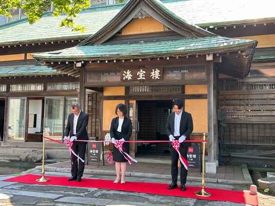 2024年6月28日、「Tabist 海宝樓 小樽」のオープンを記念して、オープニングセレモニーを開催しました。この記念すべきセレモニーには、当社事業責任者の贄田崇矢、Tabist株式会社の代表取締役社長兼CEO 田野崎亮太氏、小樽市産業港湾課 観光復興室の室長 須藤慶子氏が出席し、オープンを祝いました。