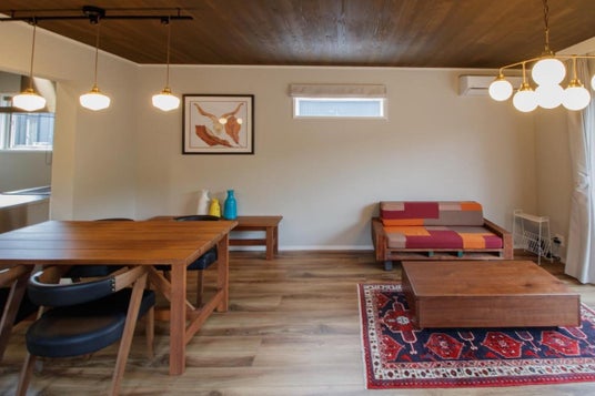 全棟にBBQグリルを設置しており、宮崎の食材(宮崎牛や地鶏、地元の海産物、新鮮な野菜など)を調達し、専用庭でBBQが楽しめます。屋内のキッチンにはIHグリルと調理器具も揃っており、音響設備も充実しているので、大画面テレビと高音質なスピーカーで映画やお好きな音楽鑑賞しながら、室内での時間も楽しむことができます。アメニティも取り揃えているので、少ない荷物で充実の青島ステイを満喫できます。