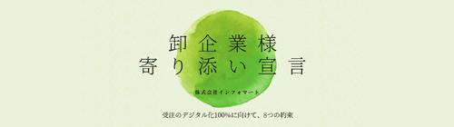 卸企業様の発展には、業務の起点となる受注をデジタル化することで業務の効率化、コストの適正化を進めることが解決策のひとつとインフォマートは考えています。引き続き、インフォマートはデジタル化を通じて、卸企業様の業務効率化を実現してまいります。